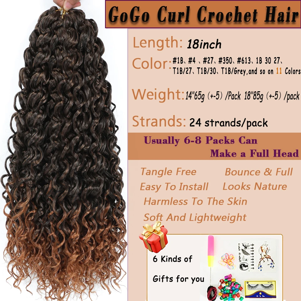 Transform your look with our 18-inch Ombre Brown Gogo Curl Crochet Hair! It features stunning ocean wave curls and deep twists made from premium synthetic fibers. Perfect for women and kids, this hair is lightweight, tangle-free, and flame-retardant, ensuring both style and safety.