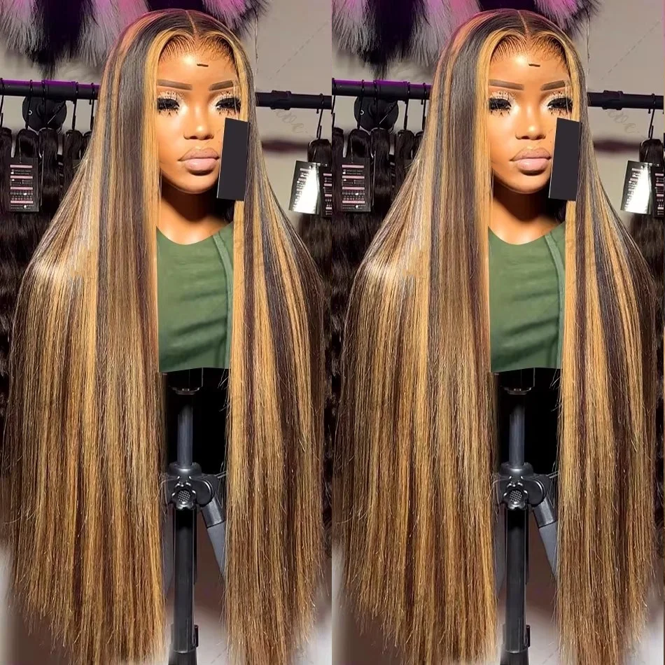 Highlight Glueless Wig Human Hair Ready To Wear Preplucked Straight Ombre Colored 13x6 HD Lace Frontal Human Hair Wigs For Women