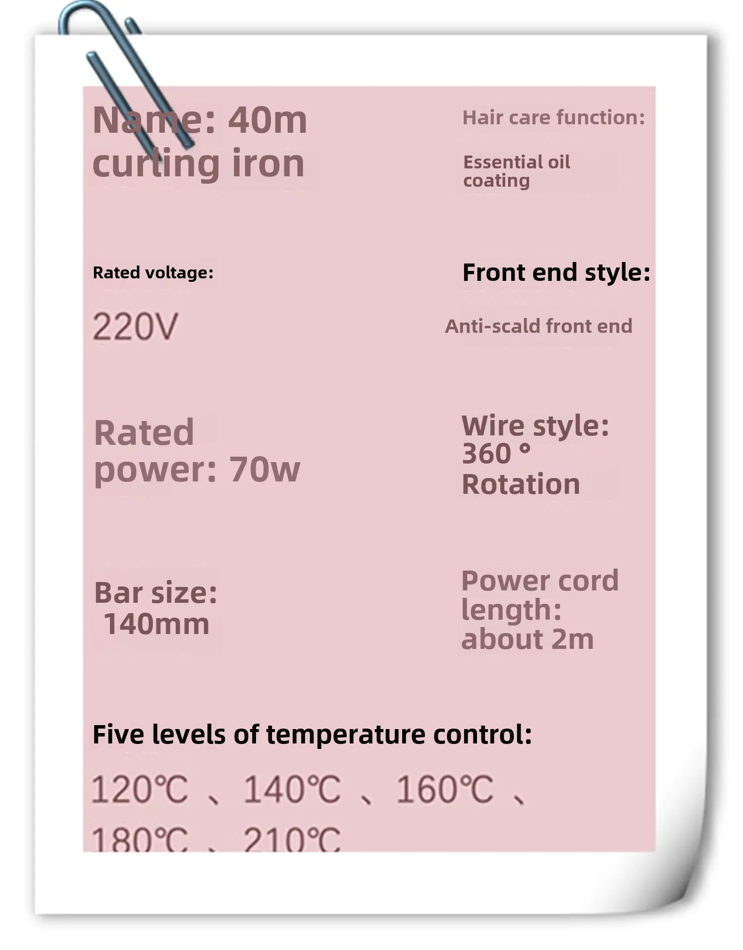 • Large 40mm Barrel : The large 40mm barrel of this curling iron allows for creating big, voluminous waves, perfect for salon-quality styling.