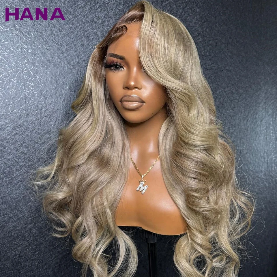 Ombre Blonde With Dark Roots Colored 5X5 Closure Wig For Women Human Hair Body Wave Ombre Ash Blonde 13X6 13X4 Lace Frontal Wig